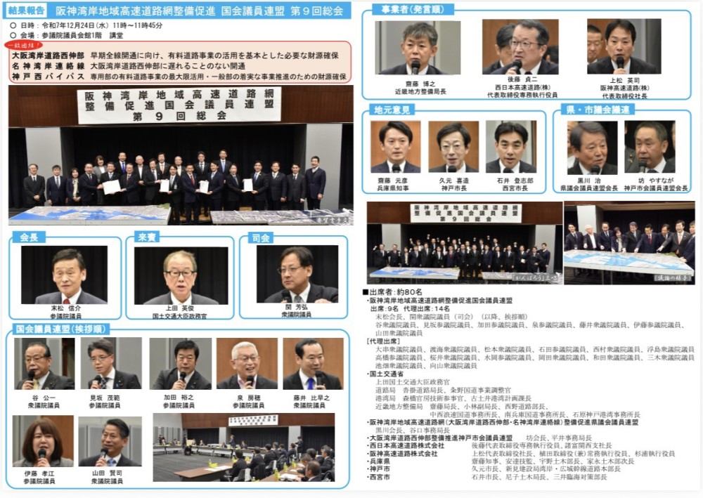 阪神湾岸地域高速道路網整備促進国会議員連盟 第9回総会が開催